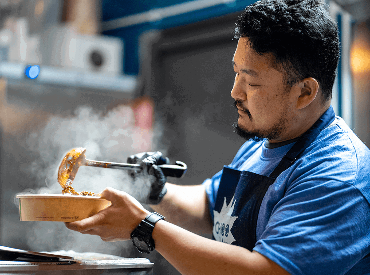 Winners of both the Scottish and British Street Food Awards in 2023, Choola has taken the Scottish food scene by storm in recent years, blending authentic Nepalese flavours with a modern twist. Founded by husband-and-wife duo Ameer and Nicole, the business started as a passion project inspired by Ameer’s upbringing in Eastern Nepal and his love of home-cooked family favourites.