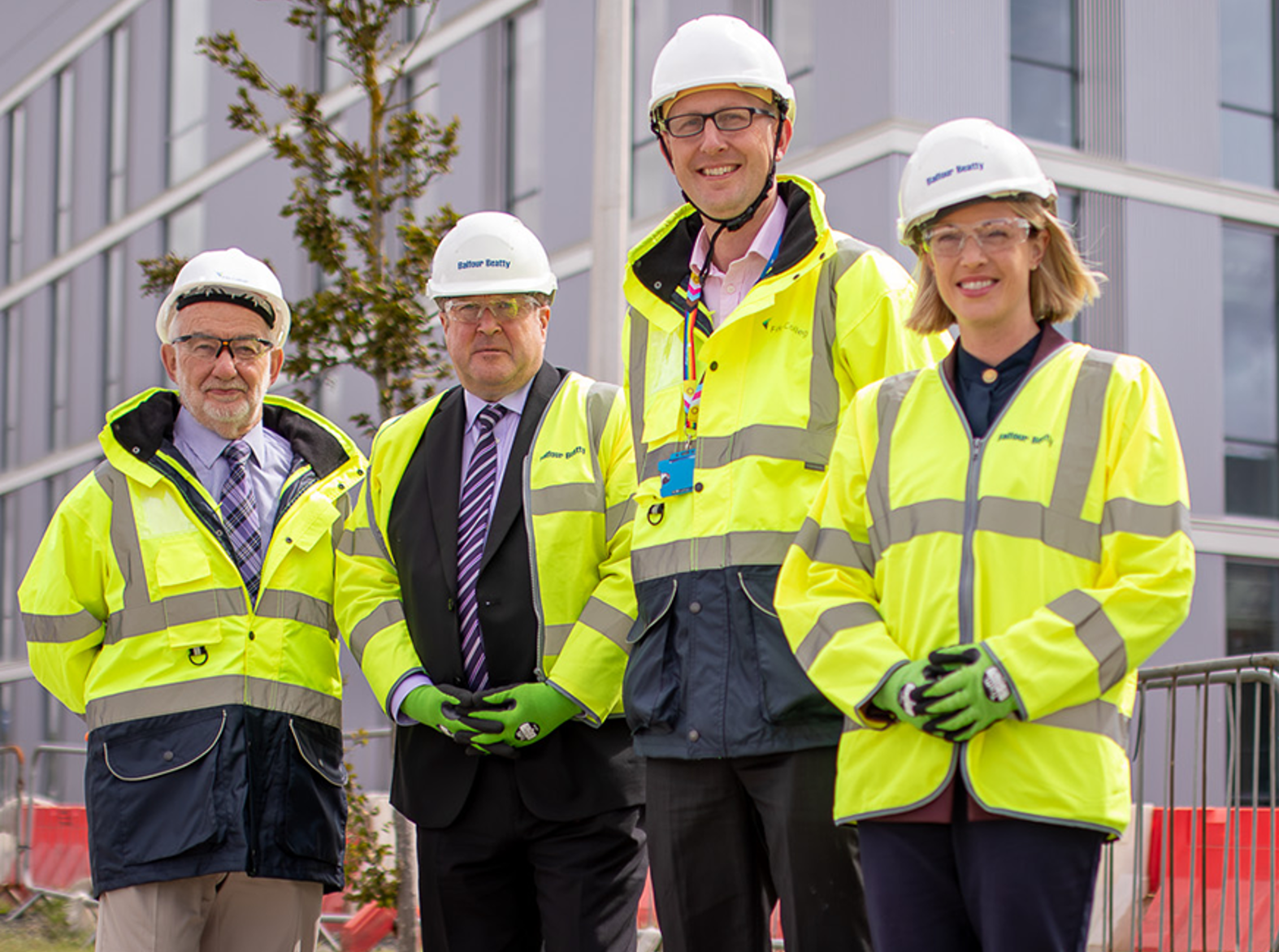 Construction partners Balfour Beatty showed the group the latest progress as work on the site continues at pace, using the latest low-energy and net-zero construction processes to ensure the building is net-zero ready.