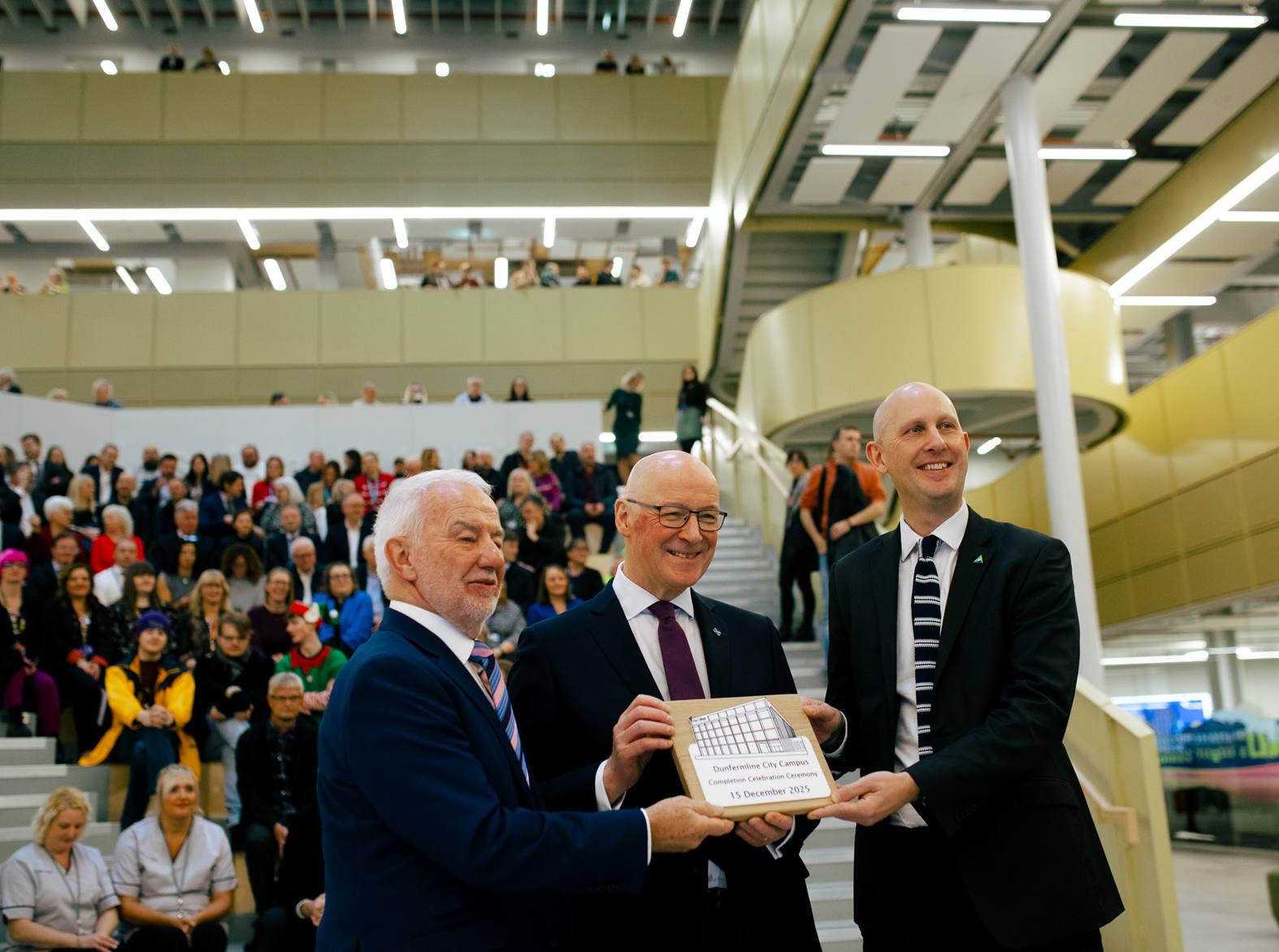 Fife College welcomed First Minister John Swinney MSP to its new Dunfermline City Campus today (15 December) as part of the official completion ceremony for the Dunfermline Learning Campus (DLC).