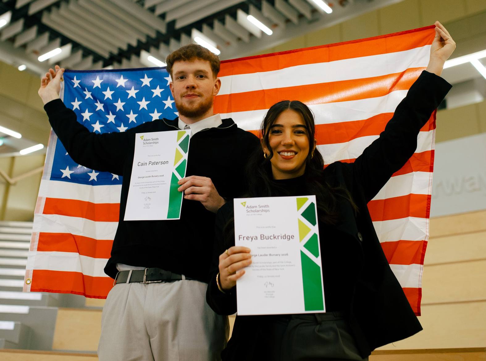 Two talented Fife College students, Freya Buckridge and Cain Paterson, have been awarded the 2026 George Lauder Bursary, securing a fully funded opportunity to live and study in the United States this summer.