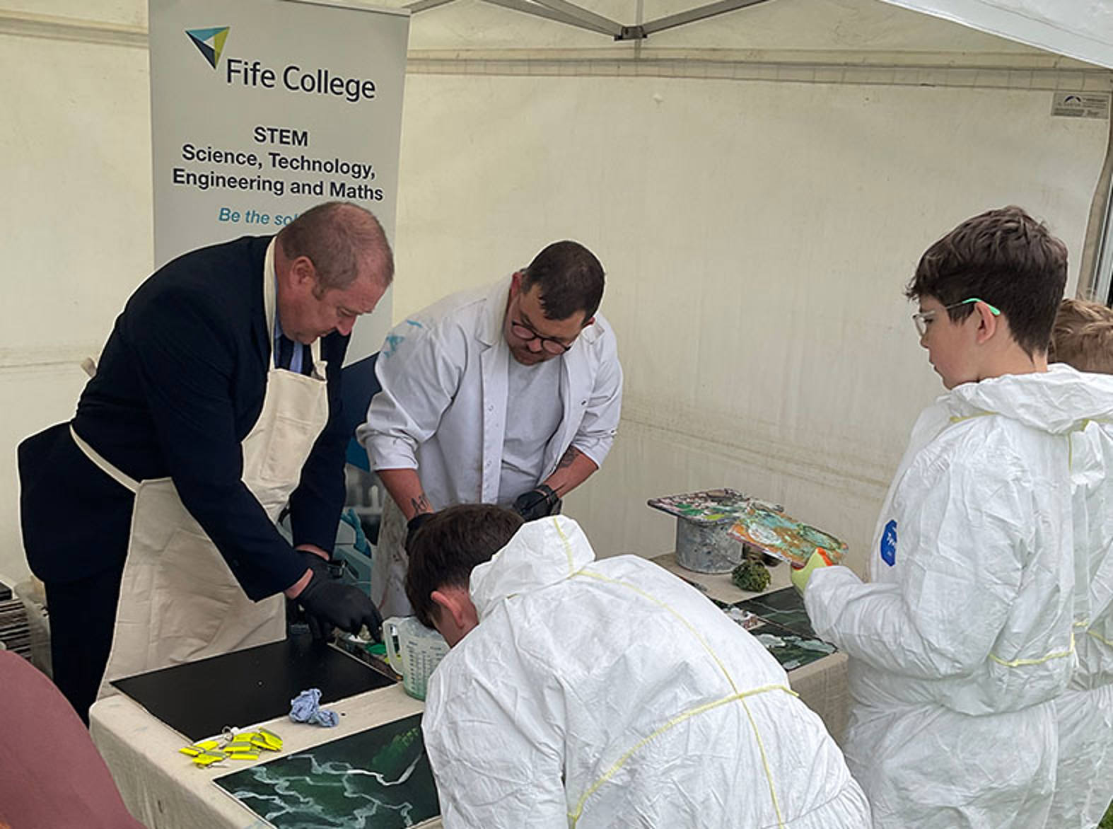 MSPs who rolled up their sleeves to try out the skills on offer at the Fife College stand included Minister for Higher and Further Education, Graeme Dey MSP, Douglas Ross MSP, Colin Smyth MSP, Finlay Carson MSP and Murdo Fraser MSP. Several representatives from the Scottish Credit and Qualifications Framework Partnership (SCQF Partnership) also showed great interest in the College’s sessions.