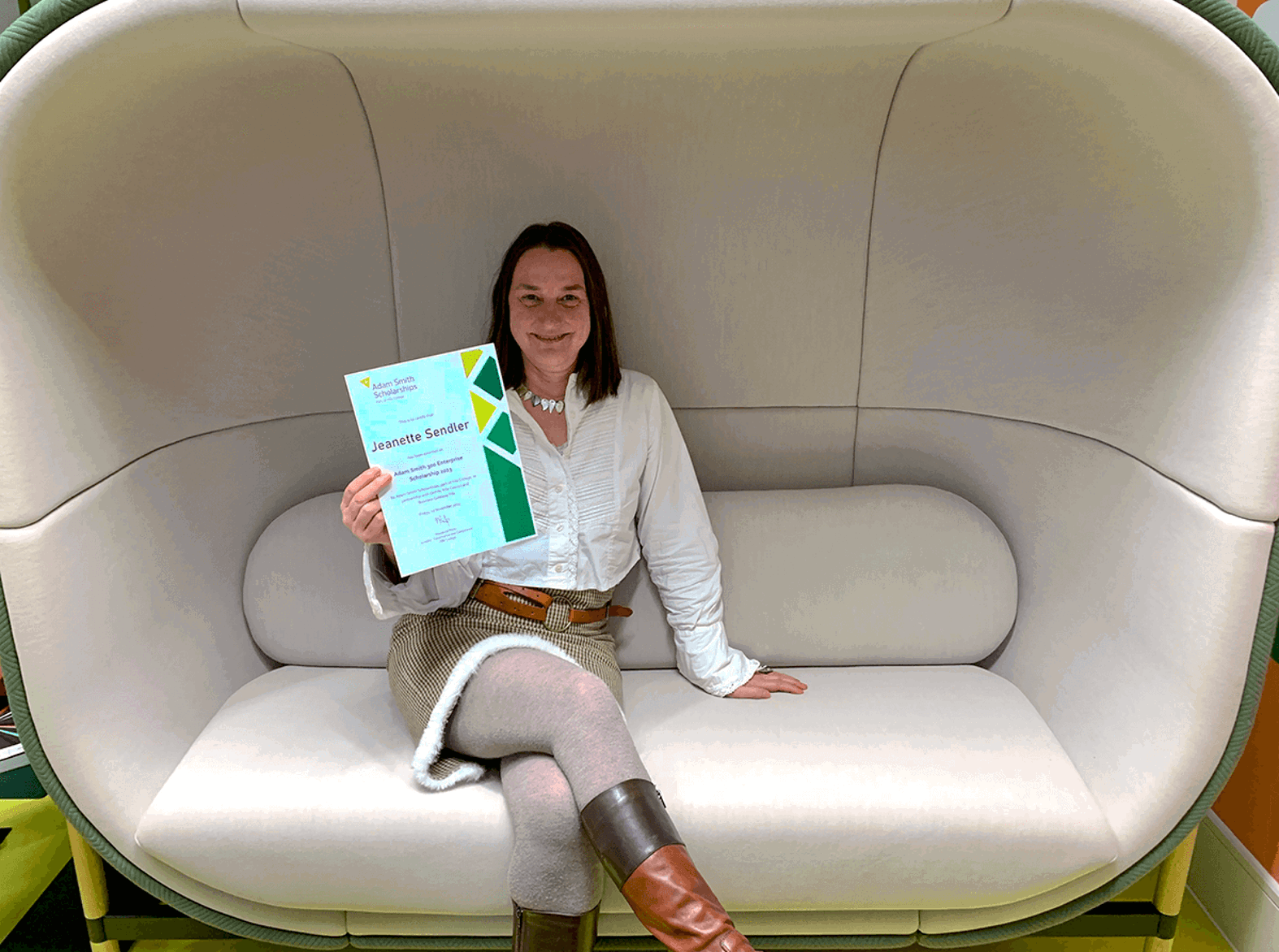 Fife College student Jeanette Sendler has become the first recipient of the Adam Smith 300 Enterprise Scholarship.