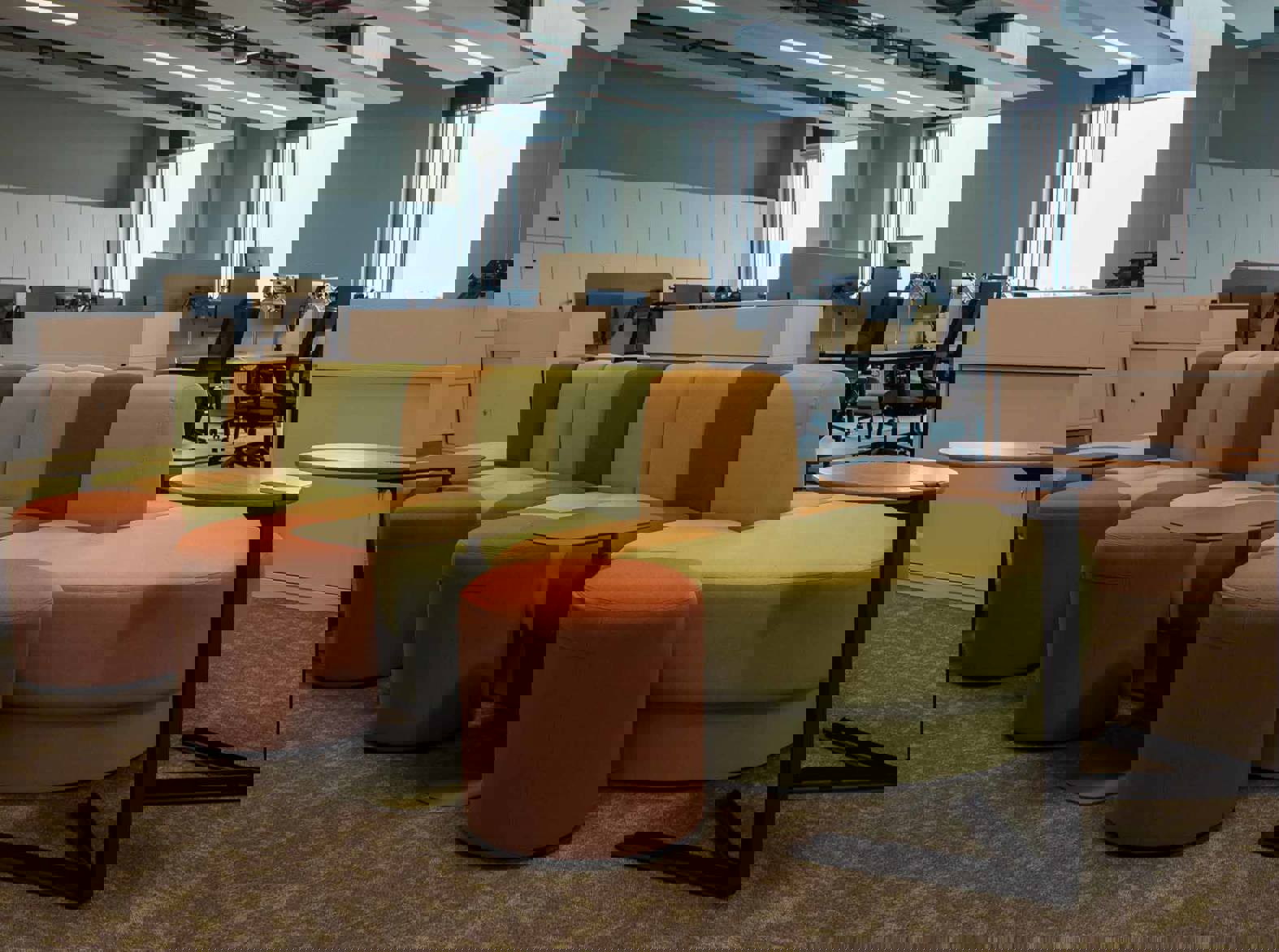 As part of its strong commitment to sustainability, Fife College has re-purposed a significant amount of existing furniture from its current Dunfermline Campus in Halbeath – including classroom tables, chairs, and soft seating. In partnership with Wagstaff, many of these items have been re-upholstered and refreshed to suit the design of the new campus while minimising waste and carbon emissions.